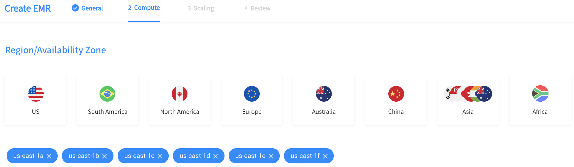 • Availability Zone: Choose one or more availability zones (AZs) in the dropdown for the chosen region.